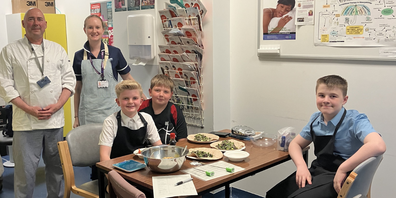 Alan Franks, a Diet Chef who works in the Patient Catering Department at the Trust (which is run by Medirest, part of the Compass Group) helped attendees with the meal preparation and Dietitian Courtney Robinson assisted them in counting the carbohydrates in their meals (which is essential for keeping their blood sugars stable). Courtney also provided information about healthy eating and discussed food hygiene and safety in the kitchen with the support of Alan.